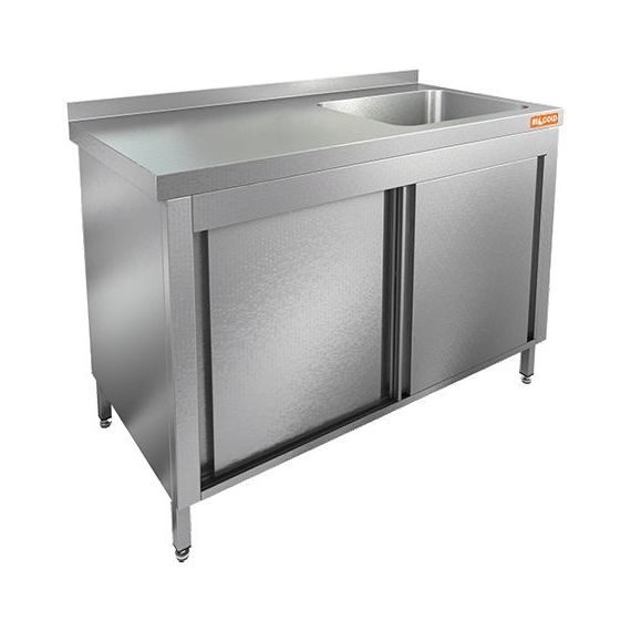 1000х700х850мм, НСЗК1М-10/7БП стол с ванной моеч. 1 секц. (500х500х300) справа, закрыт.,двери-купе