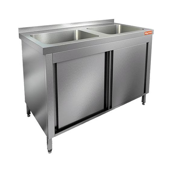 1300х600х850мм, НСЗК2М-13/6Б стол с ванной моеч. 2 секц. (500х400х250), закрыт.,двери-купе