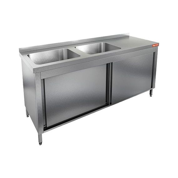1400х600х850мм, НСЗК2М-14/6БЛ стол с ванной моеч. 2 секц. (500х400х250) слева, закрыт.,двери-купе