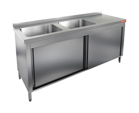 1400х700х850мм, НСЗК2М-14/7БЛ стол с ванной моеч. 2 секц. (500х500х300) слева, закрыт.,двери-купе