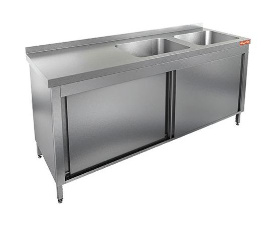 1800х700х850мм, НСЗК2М-18/7БП стол с ванной моеч. 2 секц. (500х500х300) справа, закрыт.,двери-купе