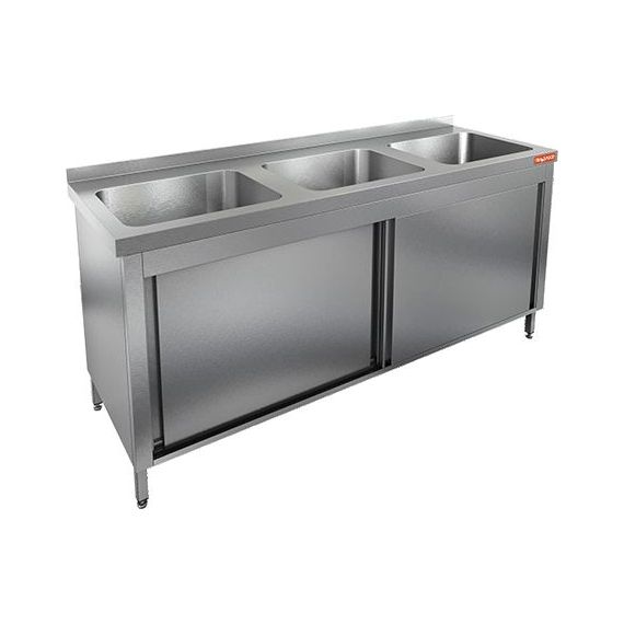 1600х700х850мм, НСЗК3М-16/7Б стол с ванной моеч. 3 секц. (500х400х250), закрыт., двери-купе