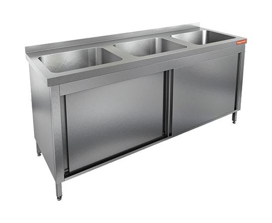 1800х600х850мм, НСЗК3М-18/6Б стол с ванной моеч. 3 секц. (500х400х250), закрыт., двери-купе