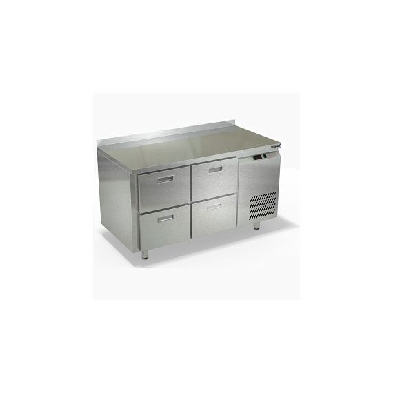1390х600х850мм, Морозильный стол с бортом высотой 50мм, боковое расположение агрегата. Столешница и корпус из нержавеющей стали марки AISI 430. Задняя панель и дно из оцинкованной стали. 4 ящика гастронормированных нагрузка по 35кг на ящик, направляющие с доводчиками (Австрия). Температурный режим -10...-18, напряжение 220В, мощность 220Вт, внутренний объем стола 224л, полезный объем стола 110л. Компрессор (Испания). Хладон R404. Нога опорная круглая, регулировка 50мм (Италия). Поставляется в собранном виде.