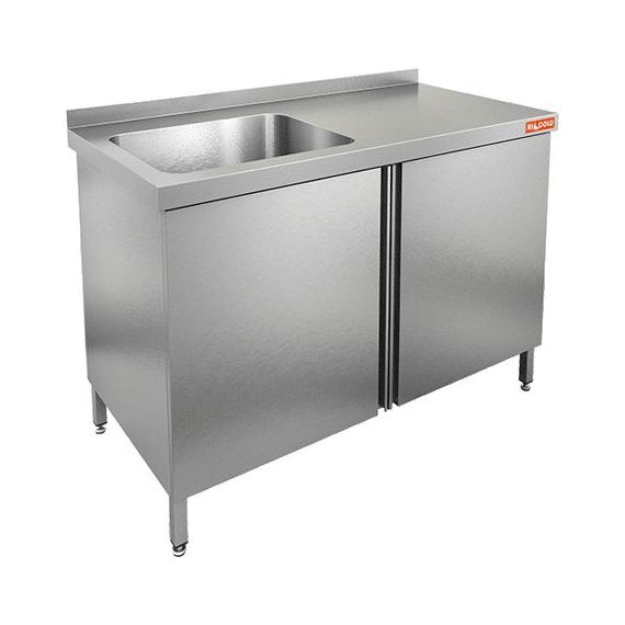1200х600х850мм, НСЗ1М-12/6БЛ стол с ванной моеч. 1 секц. (500х400х250) слева, закрыт., распаш двери