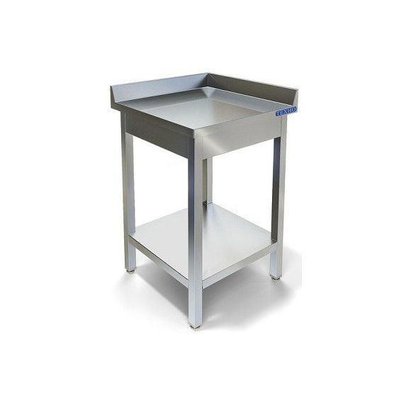 600х600х850мм, Стол угловой с двумя объемными бортами высотой 70мм. Столешница из нержавеющей стали марки AISI 430 толщиной 0,8мм, ЛДСП толщиной 32мм. Каркас разборный из трубы 40х40 нержавеющей стали марки AISI 430 толщиной 1,2мм. Полка из нержавеющей стали марки AISI 430 толщиной 0,8мм. Регулируемые опоры. Стол поставляется в разобранном виде.