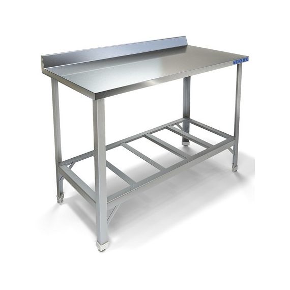 1500х600х850мм, Стол производственный с объемным бортом высотой 70мм, столешница из нержавеющей стали марки AISI 430 толщиной 0,8мм, каркас разборный из уголка 40х40 нержавеющей стали марки AISI 430 толщиной 2мм. Полка-решетка из нержавеющей стали марки AISI 430 толщиной 2мм. Регулируемые опоры. Стол поставляется в разобранном виде.