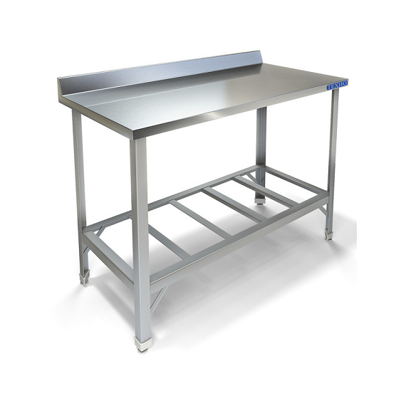 1500х700х850мм, Стол производственный с объемным бортом высотой 70мм, столешница из нержавеющей стали марки AISI 430 толщиной 0,8мм, каркас разборный из уголка 40х40 нержавеющей стали марки AISI 430 толщиной 2мм. Полка-решетка из нержавеющей стали марки AISI 430 толщиной 2мм. Регулируемые опоры. Стол поставляется в разобранном виде.