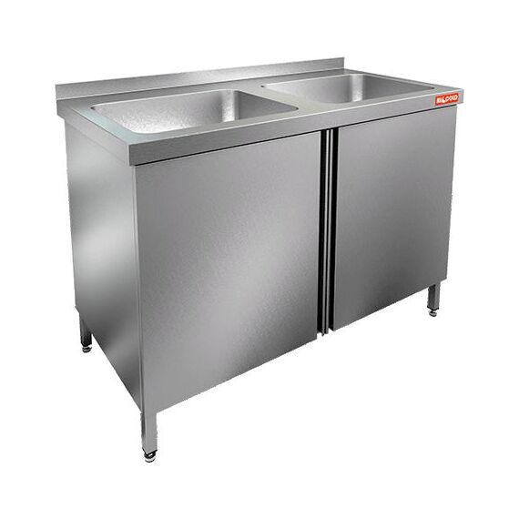 НСЗ2М-10/7Б стол с ванной моеч. 2 секц. (400х500х250) закрыт., распаш двери
