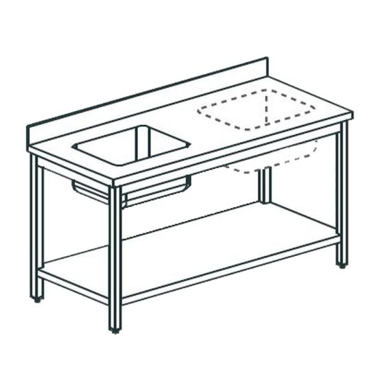 1400х700х900 мм, с бортом, с полкой, ванна справа 500х400 мм, нерж сталь AISI 304