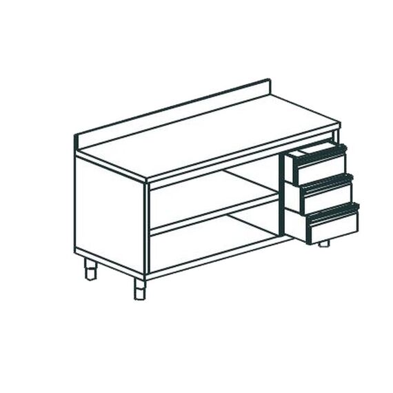 1400х600х900 мм, с бортом, полка по центру, ящики справа, нерж сталь AISI 304