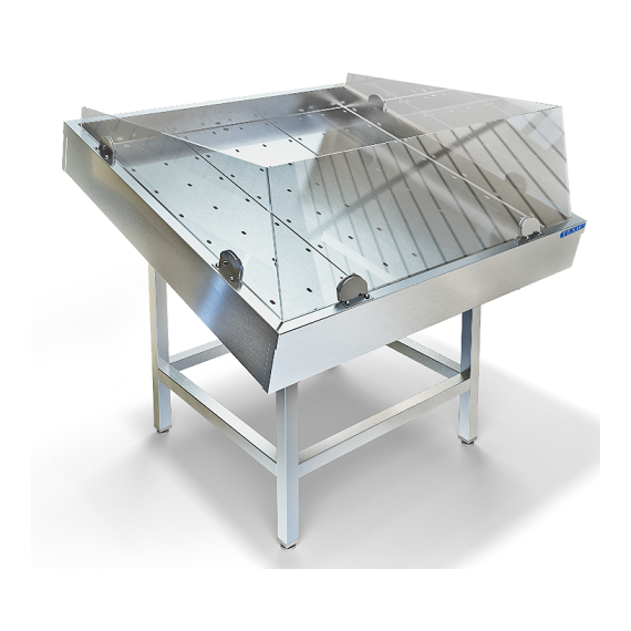 2000х1500х1030мм, Стол для выкладки рыбы на льду с агрегатом, ванна из нержавеющей стали марки AISI 304 толщиной 1,0 мм. Панели обшивки из нержавеющей стали марки AISI 430 толщиной 0,8мм. Сливные трубки диаметром 20 мм 2шт. Внутри ванны перфорированный поддон из нержавеющей стали марки AISI 430 толщиной 0,8мм для аккумулирования холода. Подставка сварная из трубы 40х40 нержавеющей стали марки AISI 304. Регулируемые опоры. Агрегат АСС (Италия), мощность 500 Вт. Стекло с 3-х сторон. Стол поставляется в собранном виде.