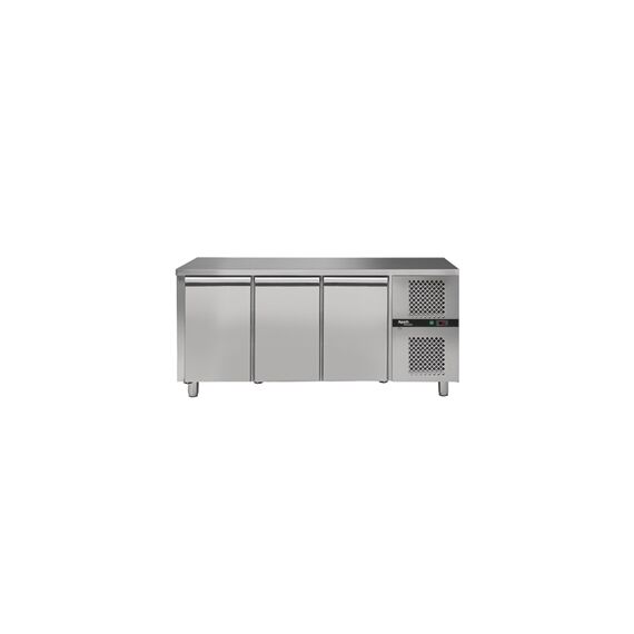 Стол с морозильным шкафом Apach AFM 03BT. Стол с морозильным шкафом Apach AFM 03BT с 3-мя распашными дверцами и рабочей камерой объемом 460 литров. Холодильный агрегат установлен в правой части оборудования, температурный режим внутренней камеры -18/-22°С, объем рабочей камеры вентилируется. Оборудование оснащено удобной и простой электронной панелью управления и встроенной функцией автоматического размораживания и выпаривания конденсата. Корпус и внутренняя камера изготовлены из нержавеющей стали AISI 304, внутренние углы закруглены; ножки стола регулируются по высоте. Данная модель предназначена для работы с гастроемкостями GN 1/1. В комплект входят 2 решетки.
