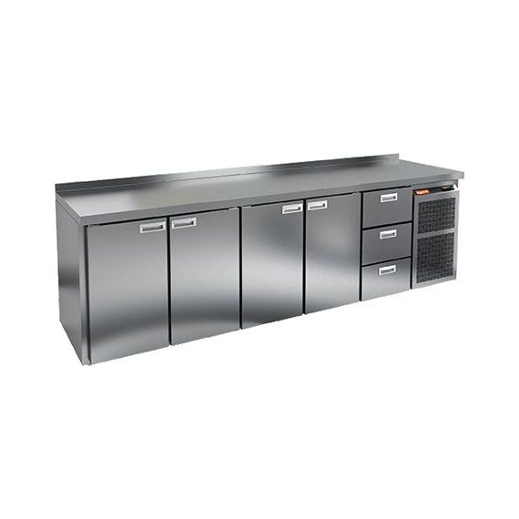 2840х700х850мм, GN 11113 BR2 TN стол охл. (-2+10), 4 двери, 3 ящика, увелич. объёма, на низ. ножках, 2840х700х850мм