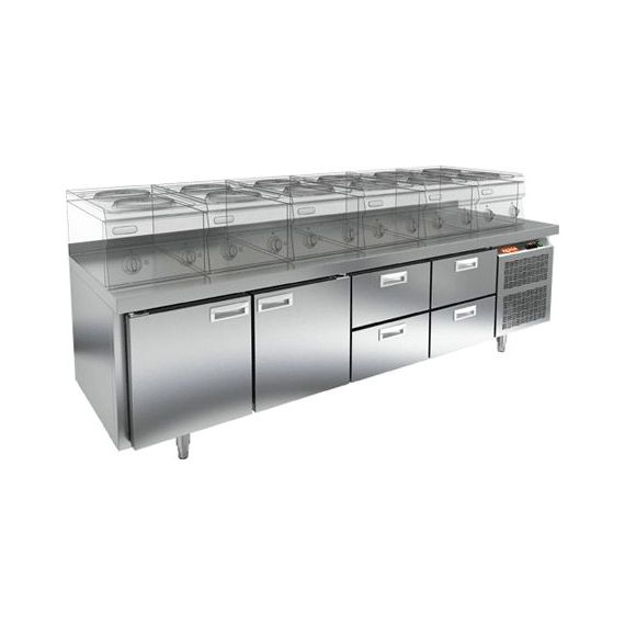 2280х700х675мм, GN 1122/TN LT стол охл. под тепловое оборуд. (-2+10), 2 двери, 4 ящика, 2280х700х675мм