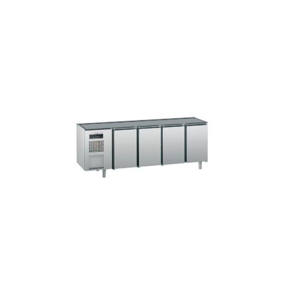 Стол холодильный, производства SAGI (Италия) модель KUC, предназначен для использования на профессиональных кухнях и сочетает в себе функциональность рабочей поверхности и холодильной камеры. Он используется для приготовления и охлаждения пищевых полуфабрикатов, напитков, блюд.Конструкция стола включает в себя холодильную камеру с четырехдверным отсеком для размещения контейнеров формата GN, без борта.Холодильная камера общим объемом 530л представлена четырехдверным отсеком для размещения контейнеров формата GN 1/1. Камера выполнена из нержавеющей стали AISI 304, имеет формованное дно со сливным отверстием для комфортного процесса очистки. Плотность закрытия камеры обеспечивают магнитные прокладки и удобные эргономические ручки на дверцах и ящиках. Температура рабочего режима холодильных отсеков составляет 0.. +10 °С. Хладопроизводительность – 475 Вт.На дверцы, ящики, боковые поверхности и пульт управления нанесено покрытие Scotchbrite, препятствующее сильному загрязнению и облегчающее процесс очистки оборудо