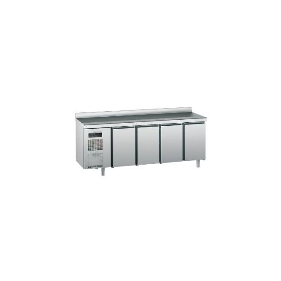 Стол холодильный SAGI (Италия), модель KUCA, сочетает в себе функциональность рабочей поверхности и холодильной камеры. Он используется для приготовления и охлаждения пищевых полуфабрикатов, напитков, блюд.Эффективная конструкция стола включает в себя столешницу с бортом и четырехсекционную холодильную камеру для размещения контейнеров формата GN.Столешница выполнена из нержавеющей стали AISI 304, ее габариты (мм): 60 (толщина), 2300 (ширина), 700 (глубина). Она снабжена звукопоглощающей панелью, защитой от огня, протеканий и высокого напряжения. Задний край столешницы отделан 85-мм бортом, позволяющим комфортно поместить стол у стены и избежать ее загрязнения во время работы.Камера, общим объемом 530 л, представлена четырехсекционным холодильным отсеком для размещения контейнеров формата GN 1/1. Камера выполнена из нержавеющей стали AISI 304, имеет формованное дно со сливным отверстием для комфортного процесса очистки. Плотность закрытия камеры гарантируют магнитные прокладки и удобные эргономические ручки н