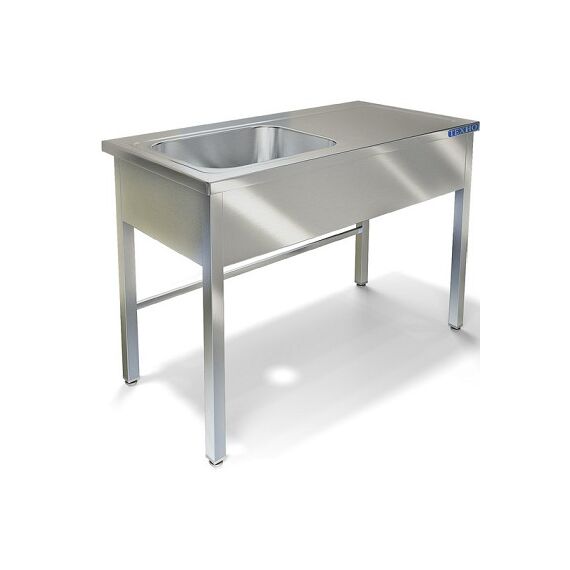 1200х700х850мм, Стол производственный без борта с ванной моечной расположенной слева. Столешница из нержавеющей стали марки AISI 304 толщиной 1мм. Каркас сварной из трубы 40х40 нержавеющей стали марки AISI 304 толщиной 1,2мм. Одна цельнотянутая емкость размером 500х400х250 из нержавеющей стали марки AISI 304 толщиной 1мм. Фартук с трех сторон из нержавеющей стали марки AISI 430 толщиной 0,8мм. Регулируемые опоры. Стол поставляется в собранном виде.