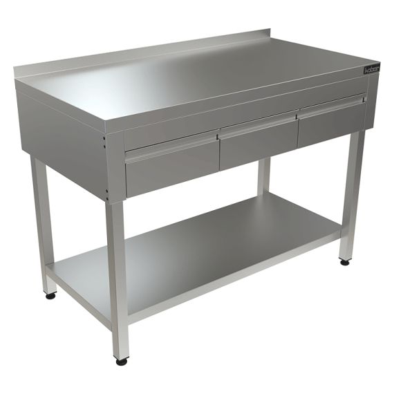 1200х600х870мм, Стол с выдвижными ящиками (столешница – нерж. сталь aisi 430, борт, выдвижные ящики под столешницей, усиление ЛДСП, каркас нерж. труба 40х40, полка, разборный)