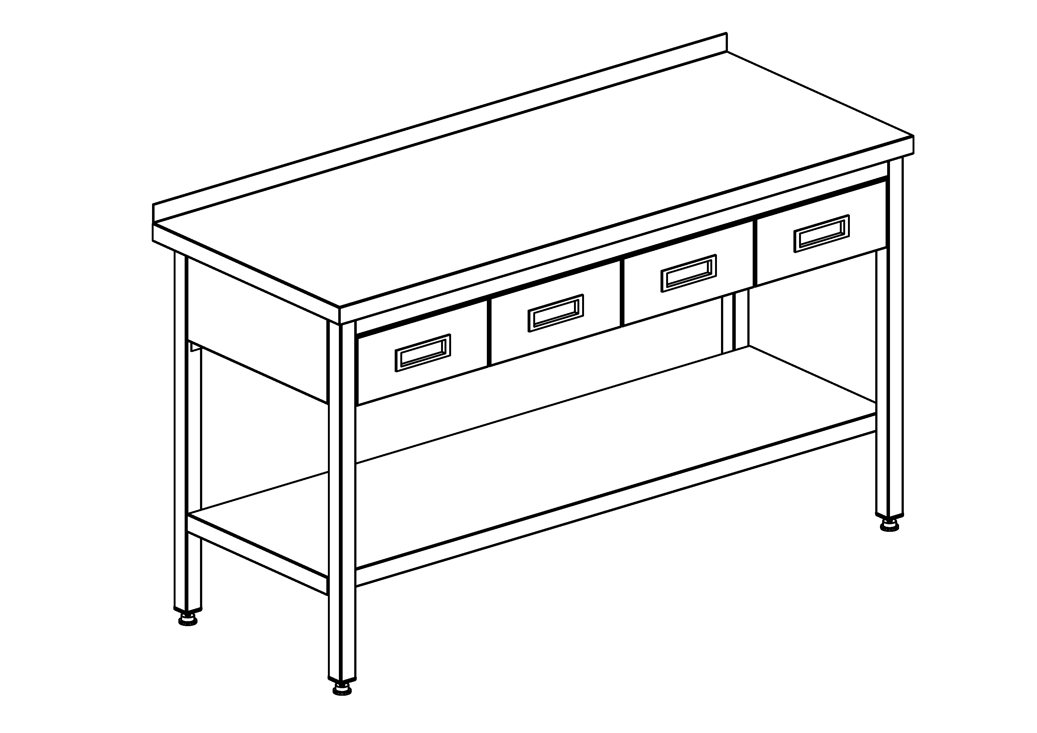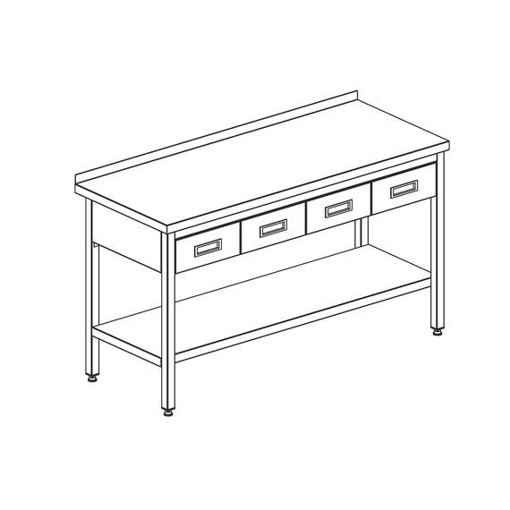 Стол с ящиками СППНЯ2 150/60, 4 ящика, борт, полка сплошная, каркас уголок, ножки труба 40х40 - нерж., 1500х600х860