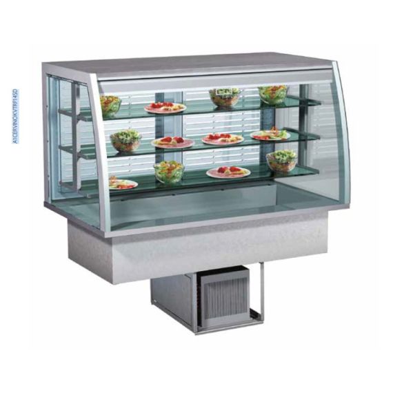 Код A1DOGEBAS14+2 x GA6843*030+A1CERVINOKVTRF14SDP, Размеры базы 1470х730х900м, 129 кг, + полки по периметру с 2 сторон длиной 1400 мм, 0,41кВт, 220В, витрина CERVINO размер 1501x731x1495 мм (795мм высота выступающей из базы части), 241 кг., в вент. холод, темп. +2…+4С, 3 полки + ванна под 4шт.*GN1/1, с встр.агр. R404, цвет базы - светлый дуб