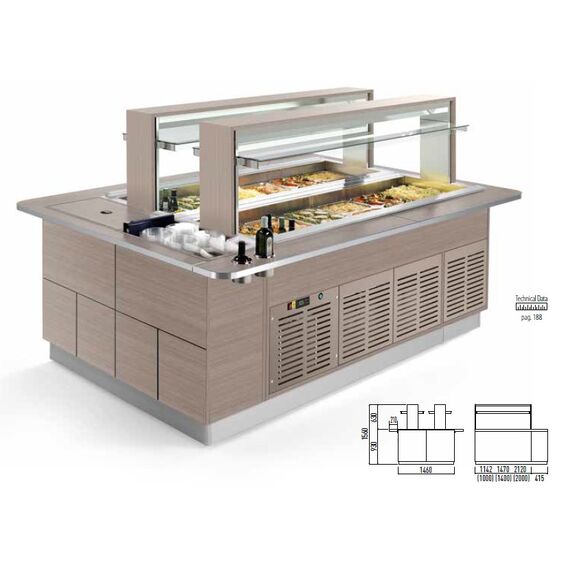 Код A1FASTGOBMRF20P/OPT68029, 2718х1881х1530мм, 1,04кВт, 220В, +30...+80С/ +2…+7С, 780кг, с встр.агр. R290, 6+6 GN1/1, цвет 330 Wenge Bangui, полки - белый кварцевый агломерат (Quarzo)