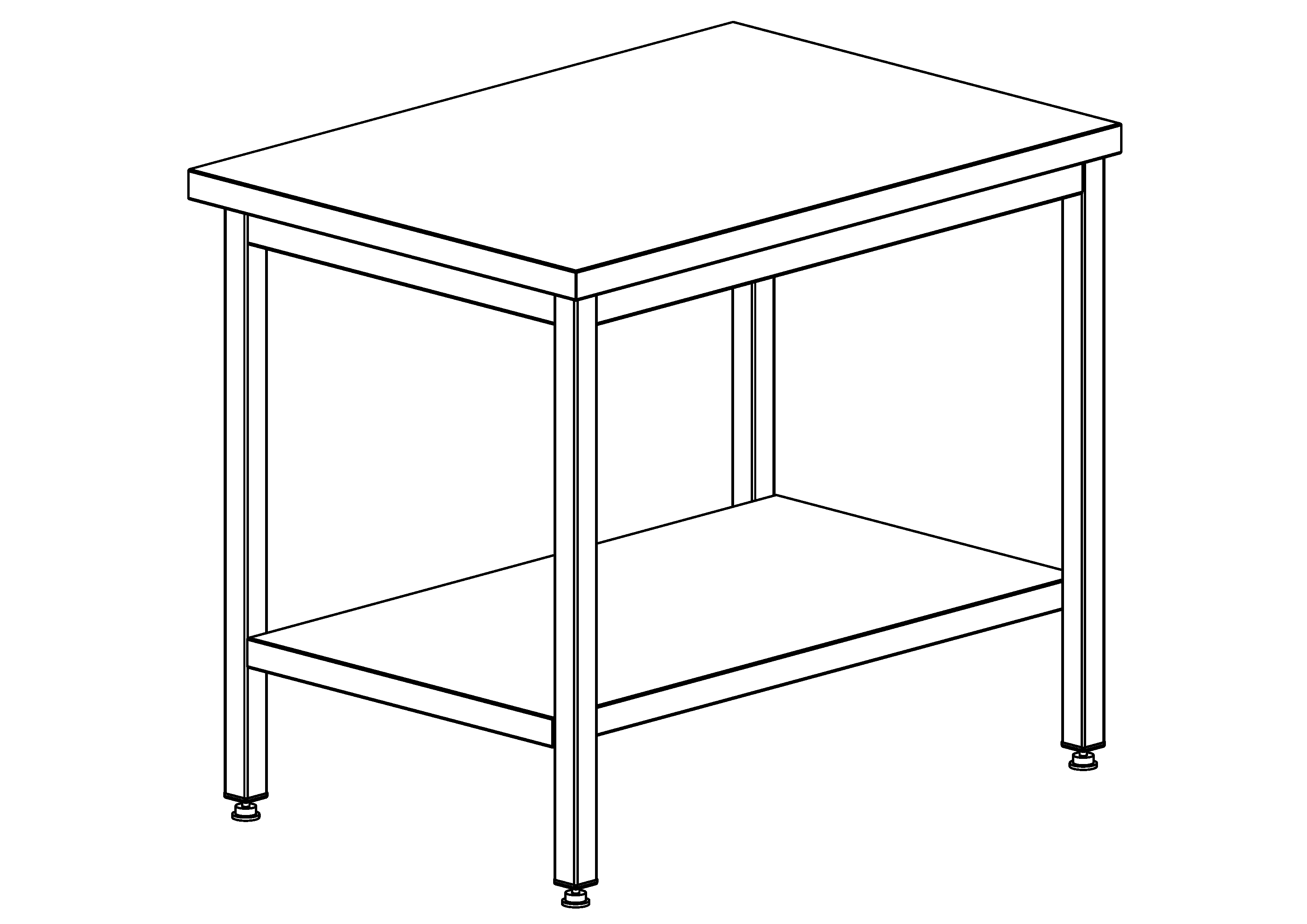Серия СПОН2 разборная конструкция, каркас выполнен из профильных элементов нерж. стали марки AISI 430 толщиной 1,2 мм, ножки из нерж. трубы 40х40 марки AISI 430. Столешница выполнена из нерж. стали марки AISI 430 толщиной 0,8 мм и усилена подложкой из ДСП толщиной 16 мм. Полка сплошная усилена ребром жесткости, выполнена из нерж. стали толщиной 0,8 мм. Стол оснащен ругулируемыми по высоте опорами.