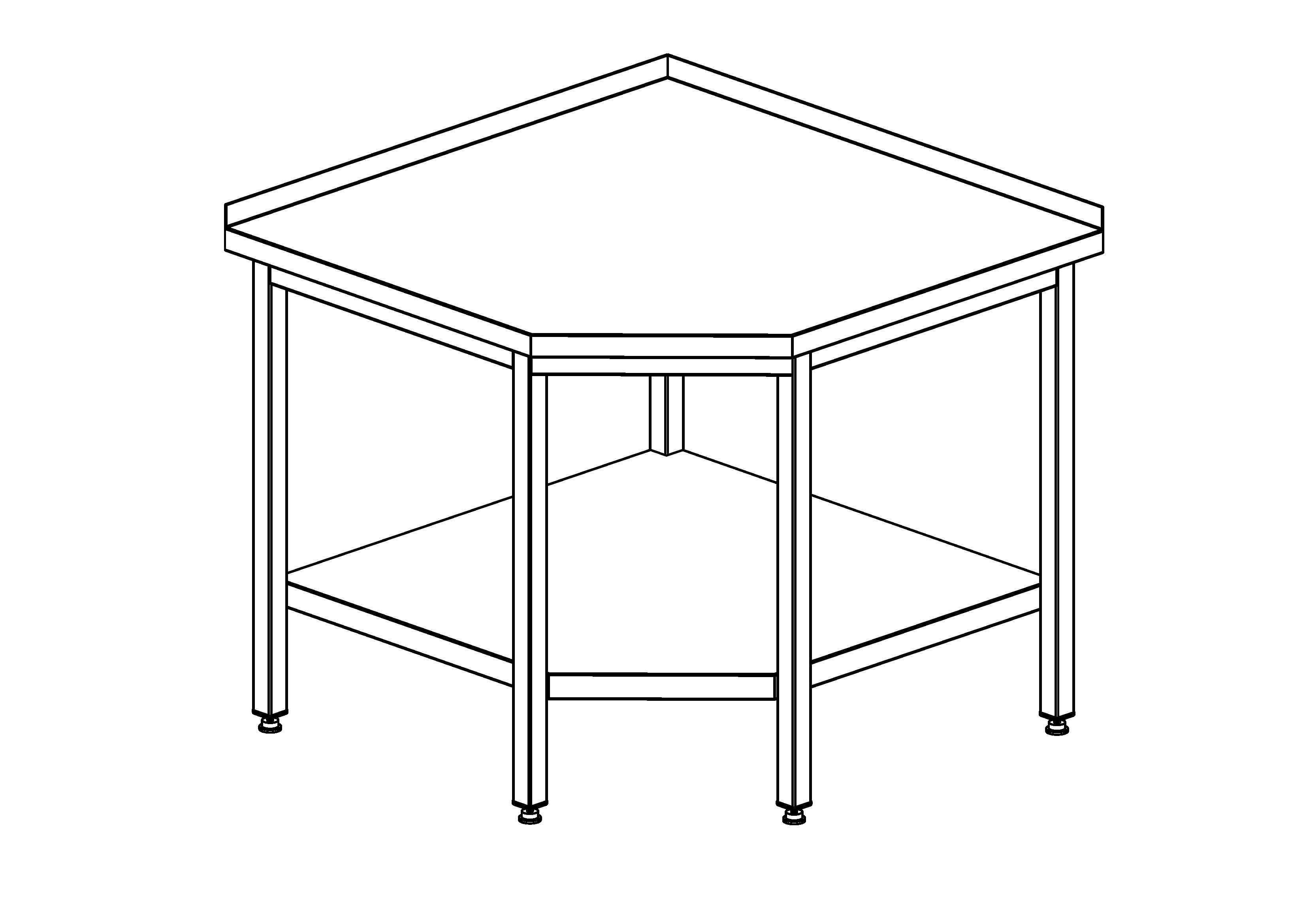 Серия СПОНУ2 разработан под серию столов с глубиной 700 мм,угловой стол имеет разборную конструкцию, какркас выполнен из профильных элементов нерж. стали марки AISI 430 толщиной 1,2мм, ножки из нерж. трубы 40х40 марки AISI 430. Столешница выполнена с бортом из нерж. стали марки AISI 430 толщиной 0. 8мм и усилена подложкой из ДСП толщиной 16мм. Полка сплошная выполнена из нерж. стали толщиной 0. 8мм. Стол оснащен регулируемыми по высоте опорами.