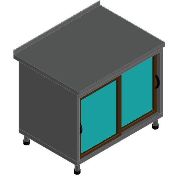 1000х760х865мм, Стол-тумба купе СТК-2Д (1000x760x905 мм) корпус-нерж., двери-ламинат со стеклом, подсветка