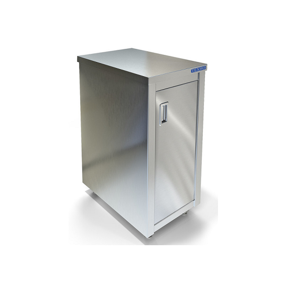 600х600х850мм, Стол-тумба без борта. Столешница из нержавеющей стали марки AISI 304 толщиной 0,8мм, ЛДСП толщиной 32 мм. Корпус и одна распашная дверка из нержавеющей стали марки AISI 304 толщиной 0,8мм. Полка из нержавеющей стали марки AISI 430 толщиной 0,8мм. Задняя стенка из оцинкованной стали толщиной 0,55мм. Регулируемые опоры. Стол поставляется в собранном виде.