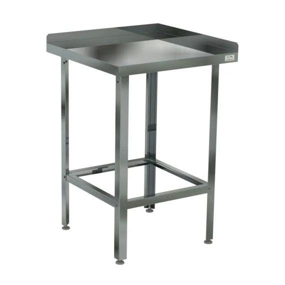 600х600х870 Стол угловой с 2 бортами (столешница – нерж. сталь aisi 430, усиление ОСП, каркас уголок нерж. сталь, обвязка с 4-х сторон)