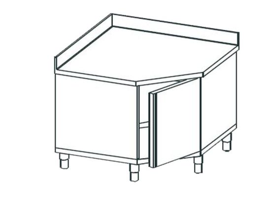 1100х700х900 мм, с бортом, угол 90 градусов, полка по центру, распашные двери, нерж сталь AISI 304