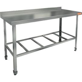 СТОЛ РАЗДЕЛОЧНЫЙ С БОРТОМ СПБ-55/60 (ВЫСОТА 850, БОРТ СЗАДИ И СЛЕВА, ОТСТ. НОГ СЗАДИ 100ММ)