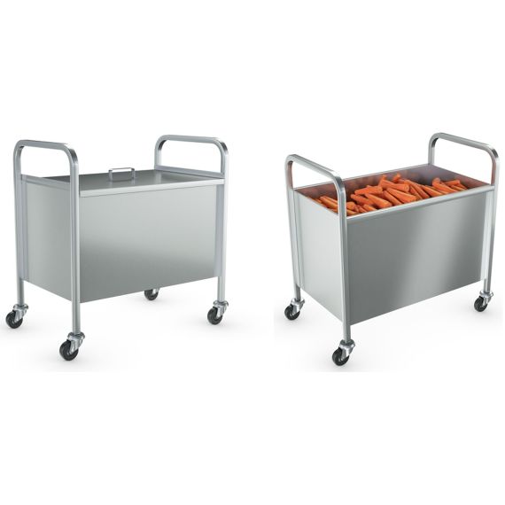 800х500х850мм, AISI304, размеры бункера 725х450х450мм, с крышкой, 1 колесо с тормозом, отверстие под слив воды с пробкой на дне тележки, сварная