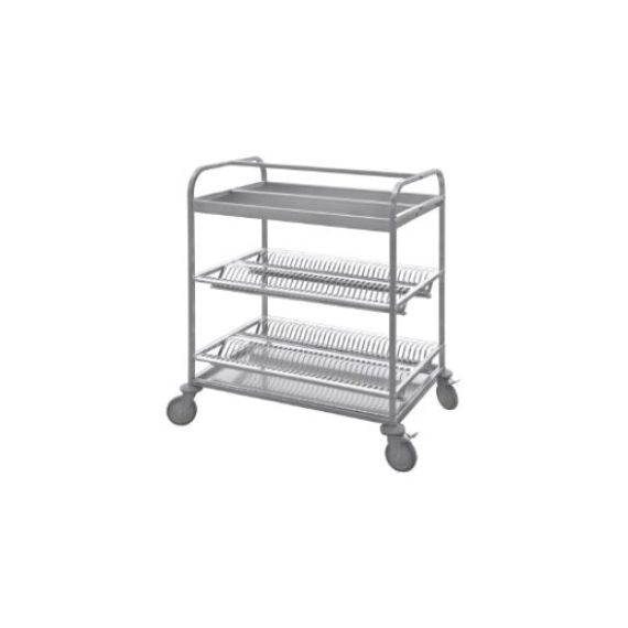 950х500х1100мм, Тележка для сушки посуды три уровня. Каркас разборный из трубы 20х20 нержавеющей стали марки AISI 304 толщиной 1,2мм. Три полки на 70 тарелок и 50 стаканов. Полки и поддон изготовлены из нержавеющей стали марки AISI 304 толщиной 0,8мм. Тележка поставляется в разобранном виде.