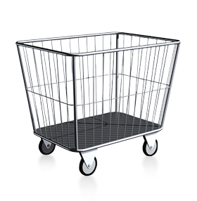 Выполнена из нержавеющей стали высокого качества в виде сетчатого короба и окантовкой в виде трубки для удобства эксплуатации. Тележка установлена на 4 колеса, диаметром 125 мм.