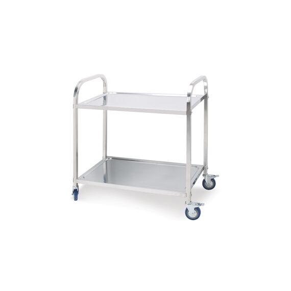 850х450х900мм, 9,4кг, сталь 201, каркас разборный из трубы 25,4х25,4мм, 2 полки, 4 колёса (2 колеса со стопором), макс. суммарная загрузка 50 кг