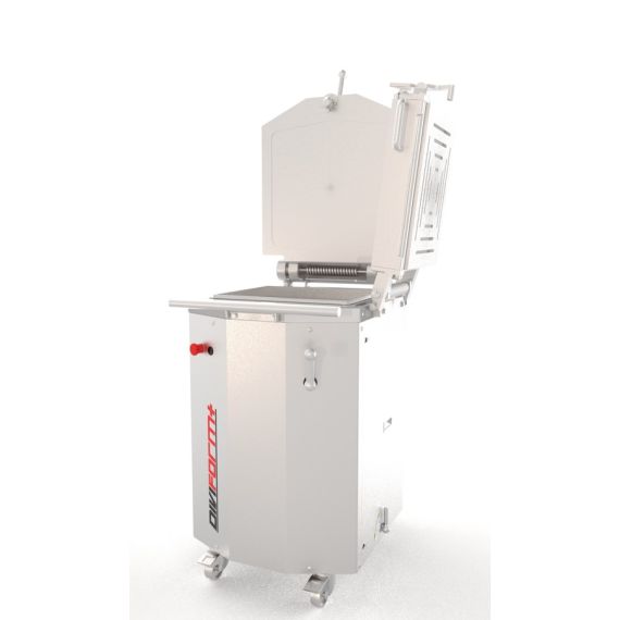 1066*1066*1761мм, 1,5кВт, 380В, размеры кювет: 460х387х125мм, вместимость кювет 5кг. От 400 до 3000 тестозаготовок в час. Отделка из нержавеющей стали. Крышка для прессовки. Применение полурешеток. Поставляется вместе с рамкой для решетки*