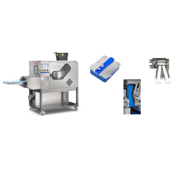 1196х769х1627мм, 380В, 1,3 кВт, бункер с тефлоновым покрытием вместимость 15 кг теста, при заказе указать вес деления (от 30 до 115 гр. или от 80 до 200г; В комплекте с оцпиями: EEC - набор электрических и электронных компонентов, а так же, программного обеспечения для работы Lyra в составе линии, RCL - доп. камера округления, SDL - разделение выводящего конвейера на 2 однорядных конвейера, FDL - мукоподсыпатель на ущле окргуления теста. Электронная панель управления