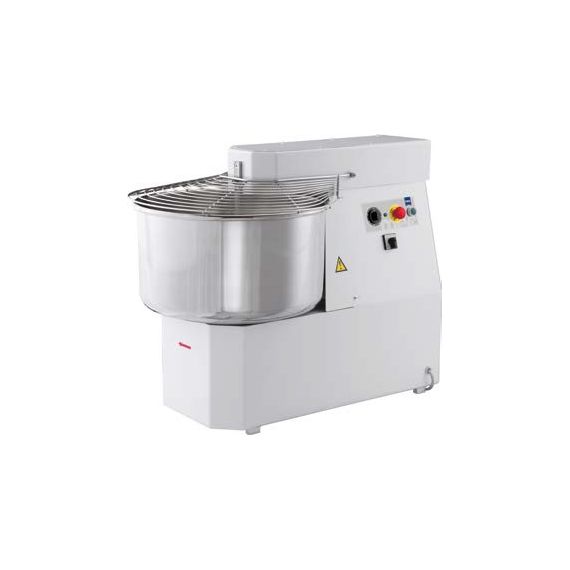 Спиральный тестомес c фиксированной чашей, производства MEC (Италия) модель SK-75-2S, предназначен для получения тщательно перемешанного пластичного однородного теста. При работе аппарата, в процессе перемешивания температура теста практически не повышается, что позволяет избежать ранней ферментации дрожжей.Тестомес имеет две скорости вращения месильного органа, что обеспечивает равномерность, и однородность замешиваемого теста. Корпус устройства выполнен из нержавеющей стали. Основа аппарата устанавливается на 4-х регулируемых металлических ножках. На передней панели размещена электромеханическая система управления. Планетарный механизм обеспечивает полный контакт месильной насадки со всем содержимым чаши во время каждого оборота вала.Съемная чаша имеет объем 75 литров и оснащена предохранительной металлической решеткой. Решетка позволяет наблюдать за рабочим процессом, а заодно исключает случайное травмирование персонала. Решетка также позволяет добавлять продукты непосредственно во время рабочего цикла.Мик