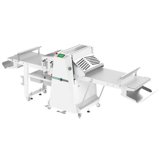 Полуавтоматическая тестораскаточная машина с основой на колёсах, доступна в версии со встроенной системой нарезки (R65S-T). Складные и съёмные рабочие столы. Реверсирование направления движения посредством кнопок с электрическим импульсом и педали. Сенсорный дисплей 4,5”, 50 рабочих программ с программированием скорости, открытия цилиндров и посыпочного устройства (опция). Защитные покрытия цилиндров оборудованы микровыключателем безопасности и газовой пружиной. Система быстрого натяжения и открепления лент. Скребки с системой быстрого открепления QR (Quick Release), патент Rollmatic. Ящик для сбора муки оборудован микровыключателем безопасности