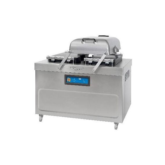 1750x980x1170(1550) мм, 2,5кВт, 380В, 490кг, камера 780x830x215 мм, длина сваривания 2х620 или 4x620 мм, макс. размер пакета 600х800 мм, панель управления Perfect, насос 106 м3/ч. Опции в комплекте боковые запаячные планки, газация, запайка и обрезка