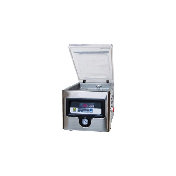 330x502x380мм, 220В, 0,37 кВт, 37.2кг, размер камеры 285x389x50мм, длина шва 260 мм, ширина шва 5 мм, глубина камеры 50 мм, 14.4 м куб/ч, вес 37,2 кг, настольный