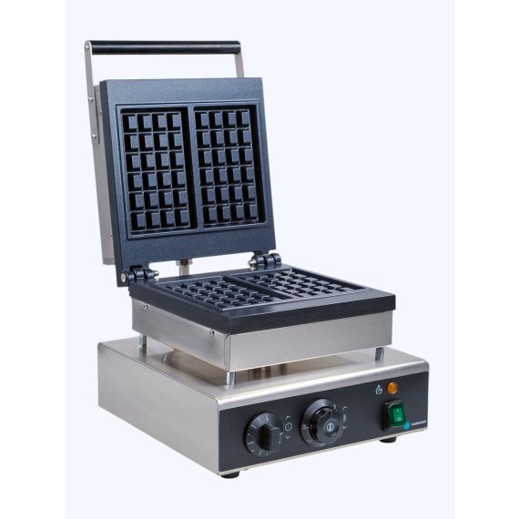 382x305x233, 1,8 кВт, 220В, материал - литой алюминий с тефлоновым антипригарным покрытием, форма вафли - стандартная бельгийская, размер вафли 160*100. температурный режим 50-300C