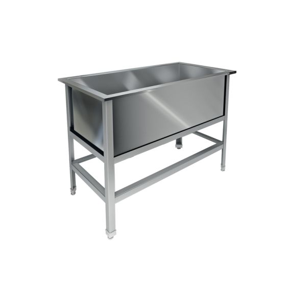 1000х530х850, ванна сварная из стали AISI 304 (1 емк.)900х430х300, каркас разборный, уголок из нержавеющей стали AISI 430, толщина 1,5 мм, рабочая поверхность изнержавеющей стали AISI 304, толщина металла 0,8 мм.