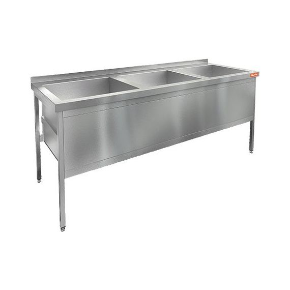 2400х800х850мм, Н3МКС-24/8 стол-моечная ванна - котломойка с площадкой под смеситель, 3секц. (670х620х438), поставляется в сборе