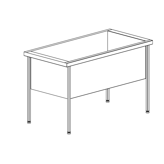 Ванная моечная/котломойка без борта. Емкость ванны сварная, выполненная из нержавеющей стали марки AISI 304, толщиной 0,8 мм. Имеет прямое дно. Размер секции - 1250х650х450 мм Без заднего борта, без отверстия под смеситель. Ножки съемные из оцинкованной стали толщиной 1,5 мм, с регулируемыми по высоте опорами. Смеситель и слив в комплект не входят.
