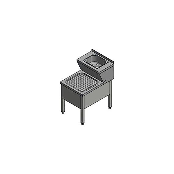 500х700х850мм, Две цельнотянутые емкости размером 400х400х250 и 325х265х150 (ванна и рукомойник) из нержавеющей стали марки AISI 304 толщиной 1мм, столешница. Ноги из трубы 40х40 нержавеющей стали марки AISI 304 толщиной 1,2мм. Регулируемые ножки, опора безметизная. Ванна со съемной перфорированной вставкой. Отверстие под смеситель. Ванна поставляется в собранном виде.