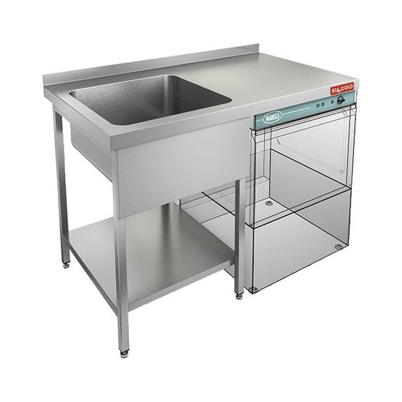 1200х700х850мм, НСО1МП-12/7БЛ стол-моечная ванна слева для посудомоеч.машины с правым крылом и ниж.полкой, 1 секц. (500х500х300)