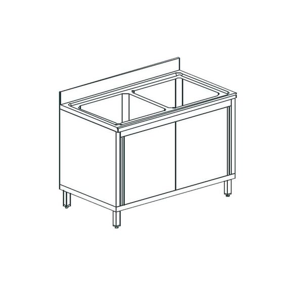 1200х600х900 мм, 2 ванны 500х400 мм, двери-купе, нерж сталь AISI 304
